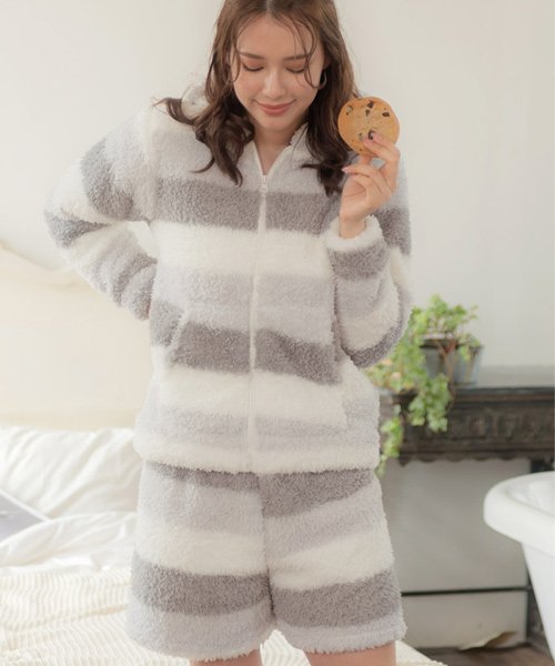 ふわもこプードルシャギーマルチボーダールームウェア上下セット ショートパンツ 全3色 ルームウェア Dita ディータ オフィシャルストア